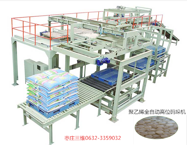 棗莊三維根據(jù)聚乙烯包裝袋的特性研發(fā)出聚乙烯全自動高位碼垛機,它可對聚乙烯各種包裝袋進行全自動碼垛作業(yè),具有堆碼速度快,垛型整齊美觀牢固的特點,該機自動化水平高,由壓平、調(diào)姿、編組、分層升降等裝置組成,整套設(shè)備動作準(zhǔn)確、可靠、維護方便,整個過程無需人工參與,節(jié)省了人力成本,提高了生產(chǎn)率。